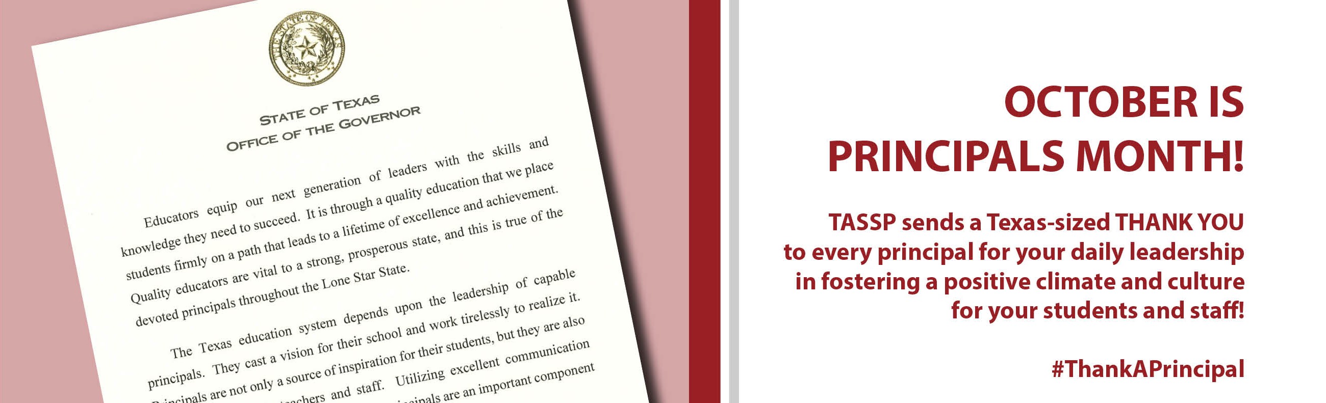 To offer Texas principals and assistant principals a forum to explore the best practices in school administration with the ultimate goal of helping facilitate student learning. It is the intent of the organization that we honor our motto, "Above All, Students First," in all that we do.